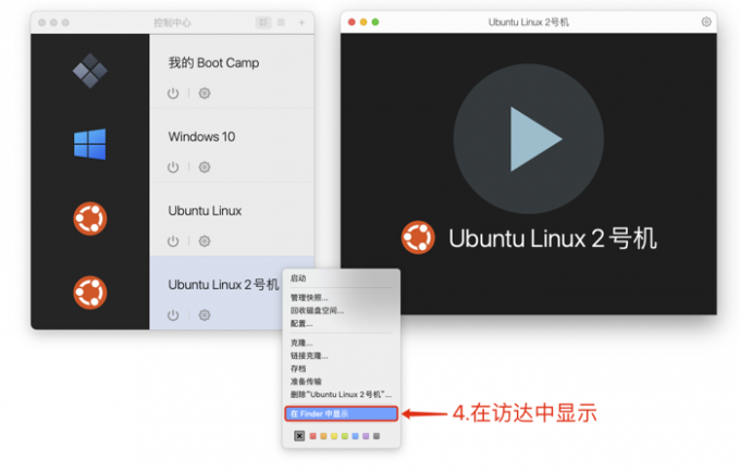 5、右击克隆好的Linux虚拟机,点击“在Finder中显示”,找到对应的“.pvm”文件。